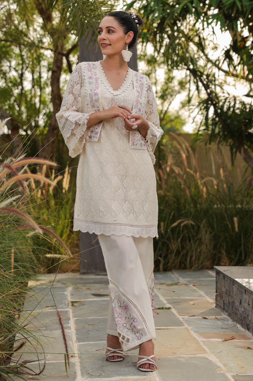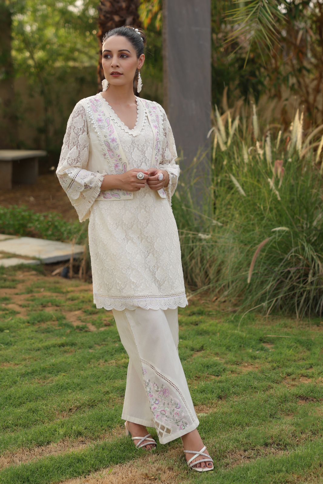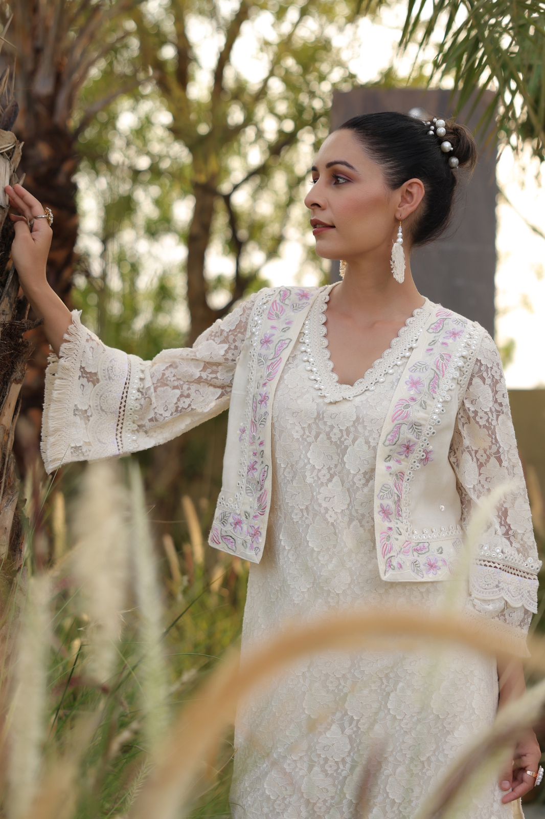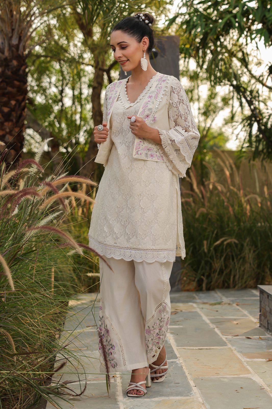 Material : Net Chikankari & Crochet Lace Work Jacket