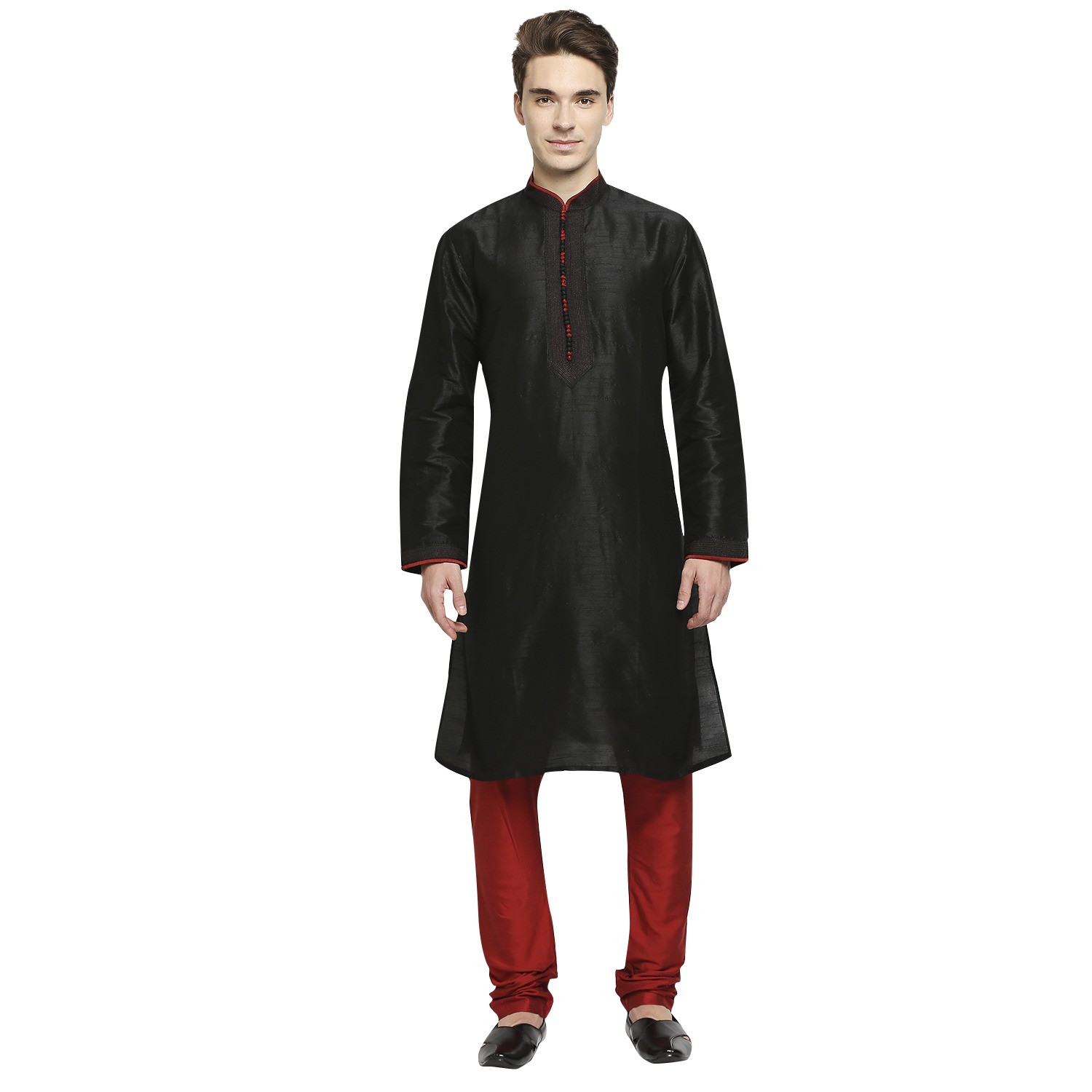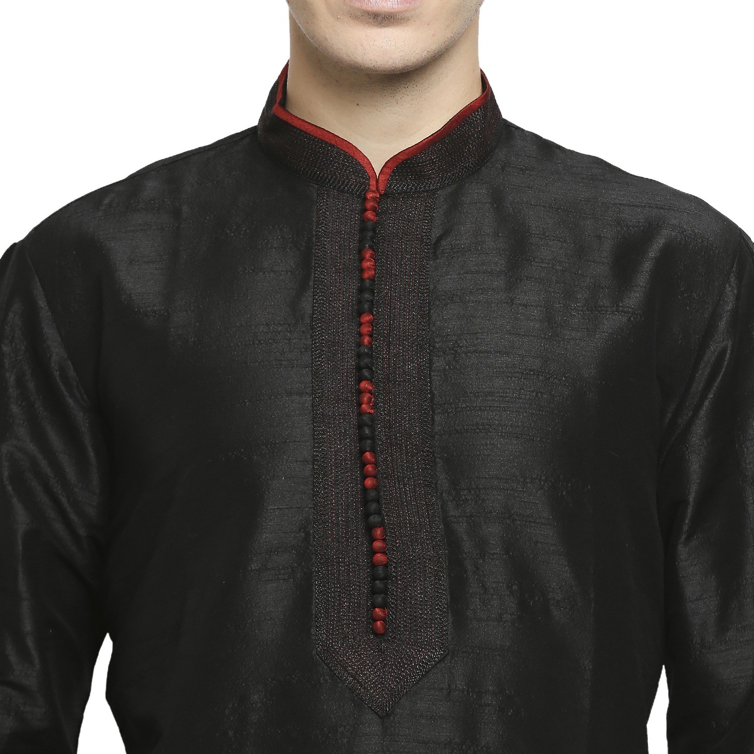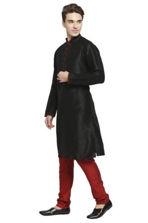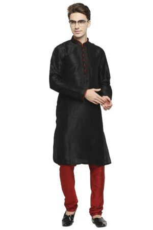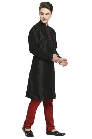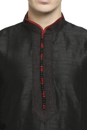 Be the first to review “Black Raw Silk Kurta With Pleated Detail And Contrast Button Detail At Collar And Placket”