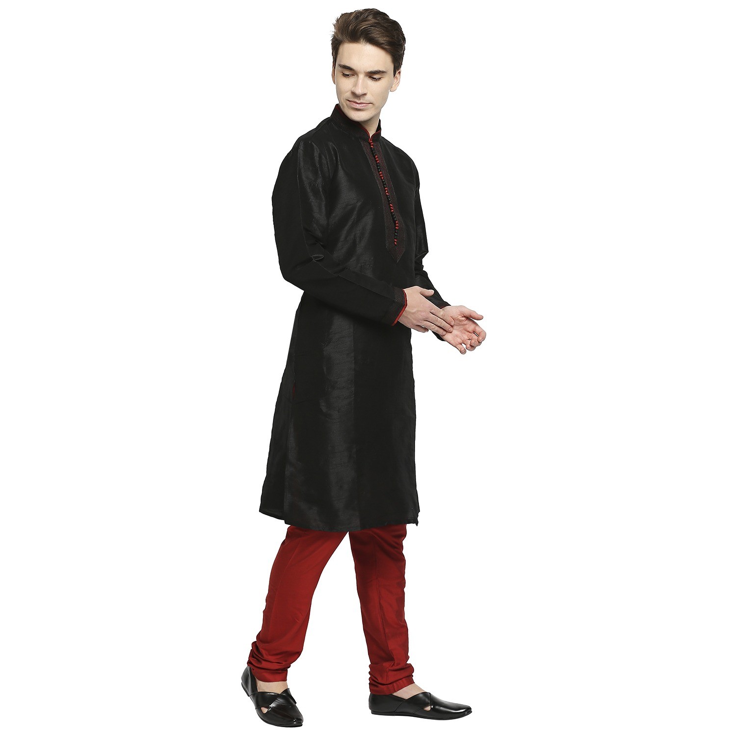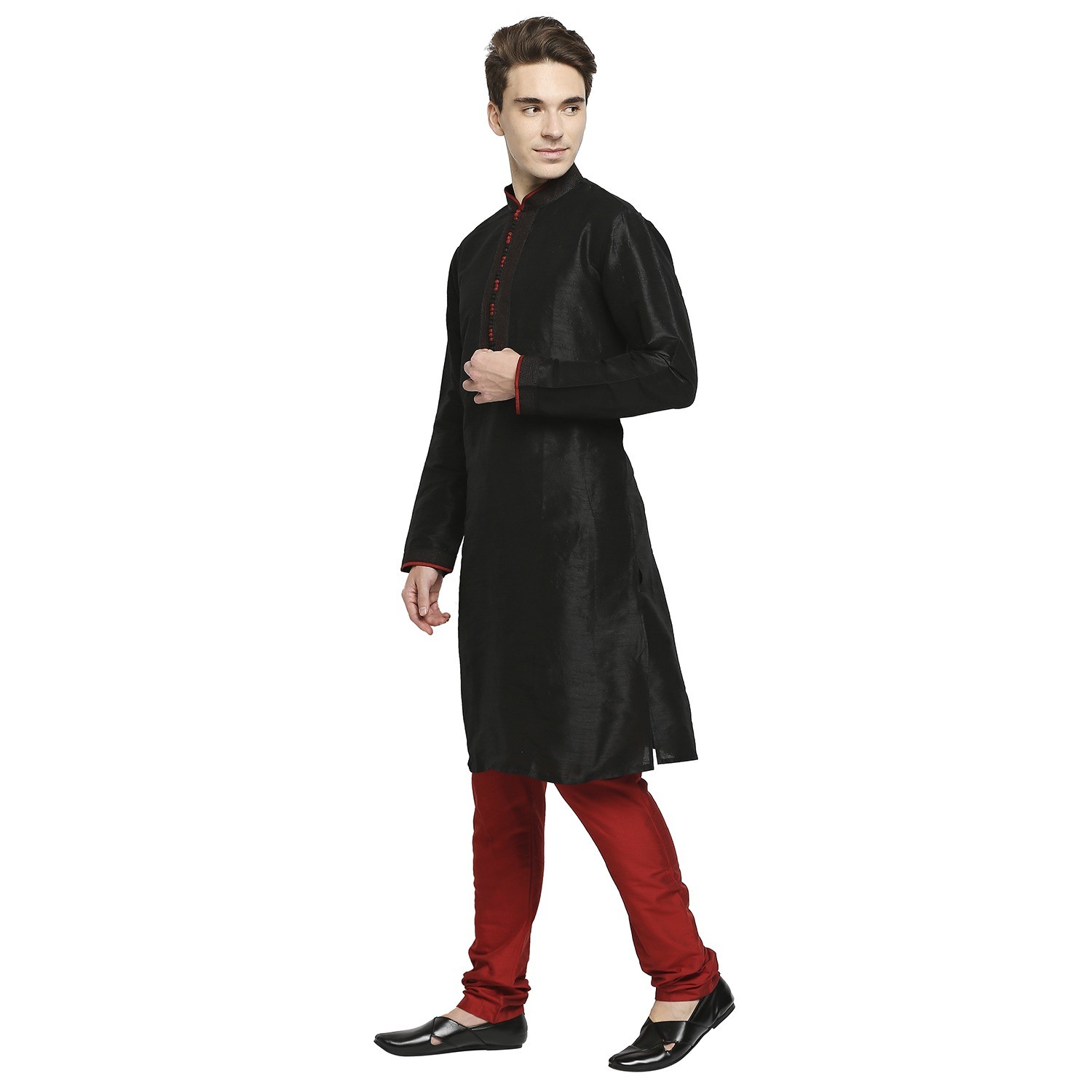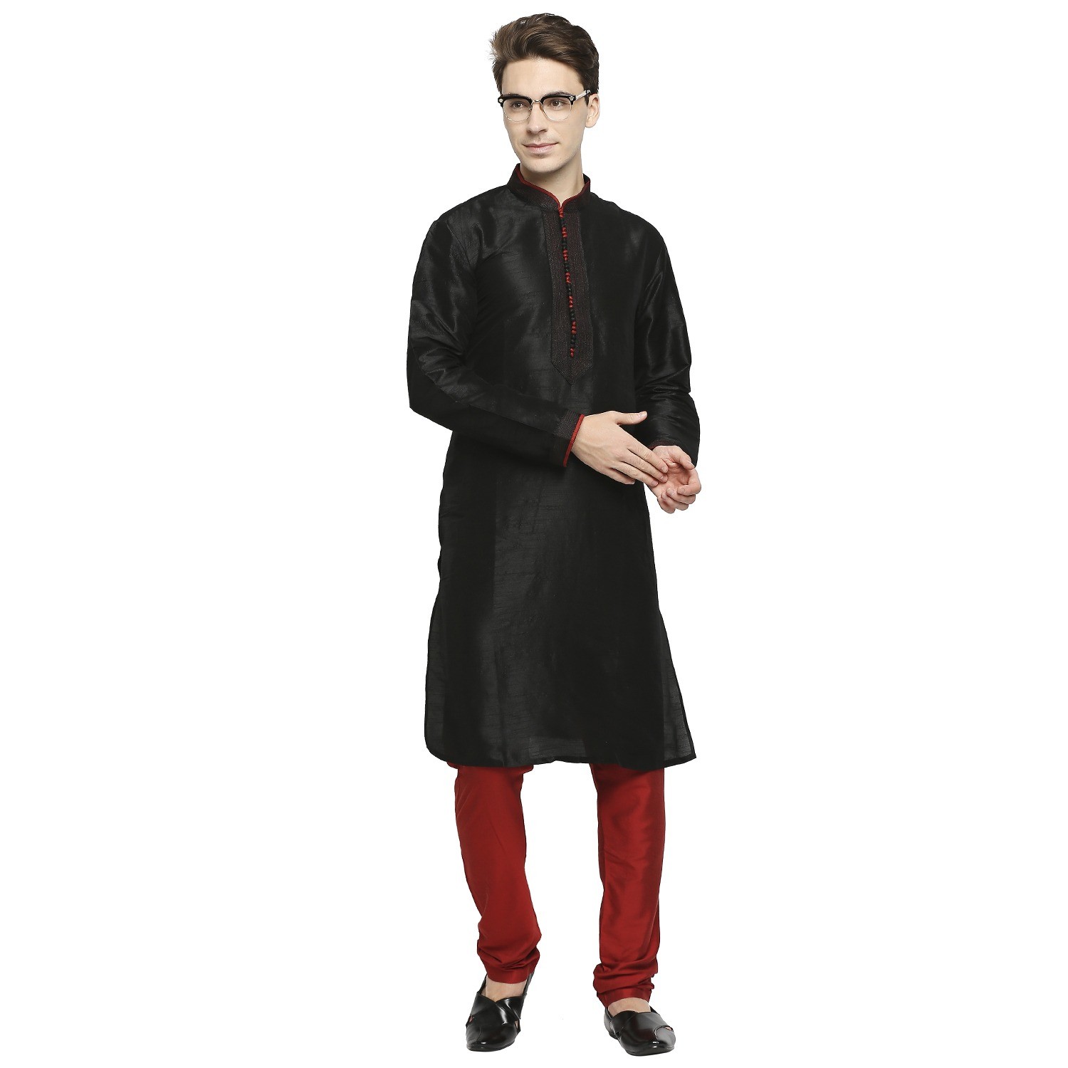 Be the first to review “Black Raw Silk Kurta With Pleated Detail And Contrast Button Detail At Collar And Placket”